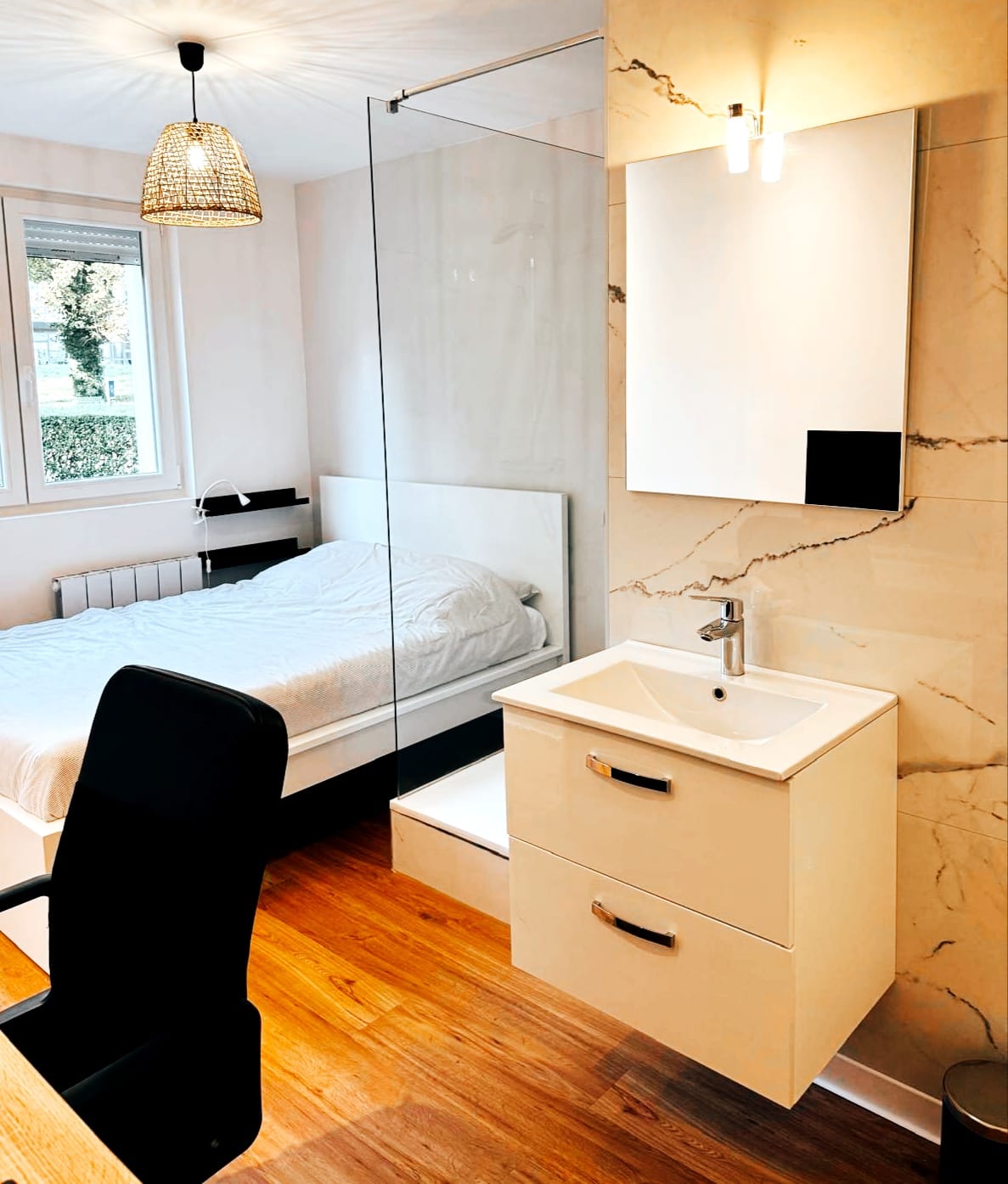 Grâce à ce travail, nous avons pu créer 4 chambres confortables, chacune équipée de sa propre salle de bain privative. Ce choix offre aux colocataires un maximum d’intimité, tout en renforçant l’attractivité et la valeur locative de l’appartement.