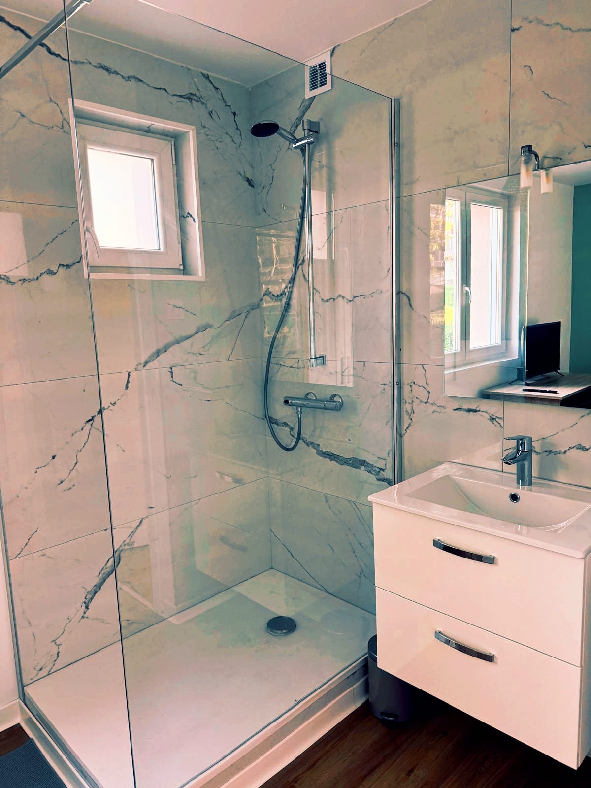Dès l’acquisition, nous avons entrepris une rénovation intégrale : isolation par l’intérieur, remplacement des fenêtres pour améliorer les performances énergétiques, et réagencement complet des cloisons. L’objectif était clair : optimiser chaque mètre carré afin de répondre aux besoins des futurs locataires.